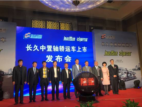4月21日,在产品创新和市场销售捷报频传的喜人背景下,长久集团改装车系统以“挑战传统,引领行业”为主题,在杭州举办了长久中置轴车辆运输车新车上市发布会。长久集团董事长薄世久先生、长久集团党委书记李延春先生、长久集团副总裁葛贤文先生、长久物流总裁李涛先生、交通运输部领导、中国物流与采购协会领导、滁州市人民政府苏滁现代产业园管委会领导、中国重汽集团领导出席了本次新品发布会。作为会议的最浓重之笔,就是由薄世久、李延春、葛贤文等领导共同启动了长久中置轴车辆运输车新车上市发布仪式,也由此宣告车辆运输车产业进入了全新的发展阶段。